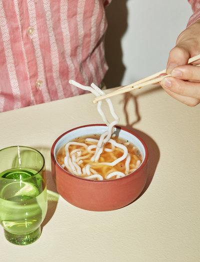Den tofarvede skål skaber et lækkert og legende udtryk. Med kombinationen af den røde og mørkebrune farve er den et råt og retro alternativ til den klassiske hvide skål. Den kan give din borddækning et forfriskende pust som et ”pop of colour” eller være et smukt og farverigt blikfang i et stilleben; du kan eksempelvis skabe dit stilleben ved at fylde skålen med bolsjer, sætte den ovenpå en dekorativ bog og stille et lys ved siden af. På denne måde bruger du skålen som en del af indretningen og skaber et indbydende og hyggeligt stilleben. Skålen er perfekt til et moderne og ungt værelse og kan bruges kreativt til eksempelvis opbevaring af smykker, eller den kan indgå i en stilren og luksuriøs borddækning til et aftenselskab. Du kan også skabe et kontrastfyldt udtryk med farvet glas.
