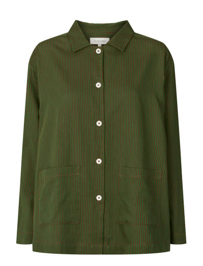 Denne afslappede skjorte er fremstillet af 100% økologisk bomuld og har en lille krave og knapper foran. Den løse, oversized pasform fuldendes af to forlommer. Den kan bæres alene eller med en strik på de køligere dage, og styles med cordfløjls- eller bomuldsbukser eller en rummelig nederdel for et flot, afslappet look.