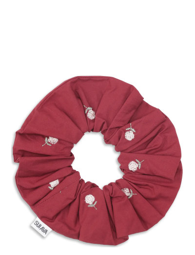 Sæt håret op med stil med denne scrunchie, der har fine blomsterbroderier. Det elastiske design sikrer et behageligt og sikkert hold, hvilket gør den til en praktisk og smuk tilføjelse til din samling af hårtilbehør.