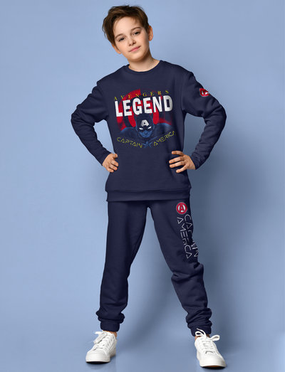 Dette stilfulde og komfortable tracksuit er perfekt til enhver ung Avengers-fan. Trøjen har et fedt Captain America-print, og bukserne har en diskret Captain America-logo. Fremstillet af en blød og åndbar blanding af genanvendt bomuld og polyester, er dette tracksuit perfekt til hverdagsbrug.