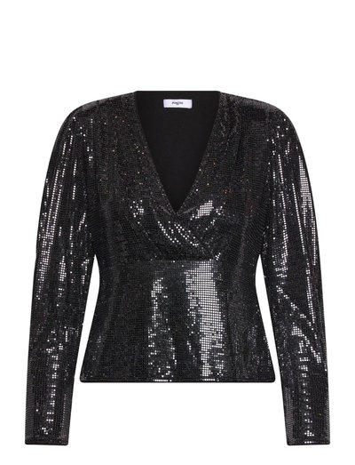 Glimtende pailletter fanger lyset på denne langærmede top og skaber en blændende effekt. V-udskæringen og den figursyede silhuet tilføjer et strejf af elegance, hvilket gør den perfekt til aftenarrangementer eller særlige lejligheder.