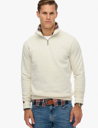 Superdry ESSENTIAL LOGO HENLEY er en klassisk sweatshirt med et moderne twist. Den har en halv lynlåslukning, en Henley-stil krave og en lille Superdry logo på brystet. Sweatshirten er lavet af en blød og behagelig bomuldsblanding, hvilket gør den perfekt til hverdagsbrug.
