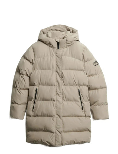 Hold dig varm i denne mellemlange pufferjakke, der er designet med en afslappet pasform for ultimativ komfort. Den har en hætte med en ekstra krave for ekstra varme samt lynlås- og trykknaplukning og en justerbar kant forneden med elastiksnor. Jakken er fuldendt med manchetter med hul til tommelfingeren, to lynlåslommer og en inderlomme, og den er afsluttet med broderet tekst på ryggen og et signaturmærke på ærmet.
