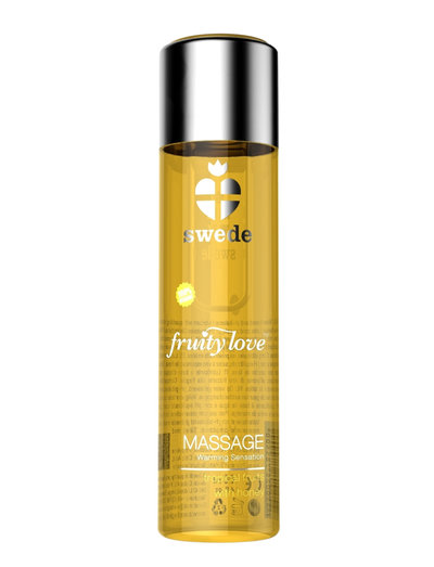 Swede Fruity Love Massage er en serie varmende massagelotioner med tilsat smag i høj kvalitet fra svenske Swede. Lotionen er vandbaseret og har en nøje udviklet formel, der er hudvenlig og uskadelig at indtage. Fri for parabener, mineralske olier og silikone. Massagelotionen har en fin balance mellem glid og friktion og holder længe. Efterlader ikke en fedtet og olieret følelse på huden - kun en følelse af velvære.
