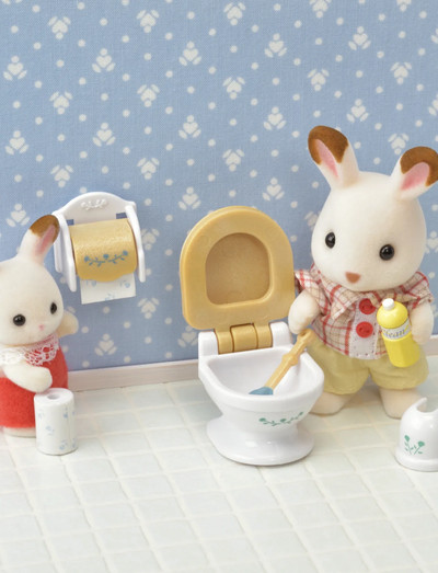 Country Bathroom Set er et perfekt møbelsæt til dit Sylvanian Families-hus. Sættet indeholder et badekar, en håndvask, en bruser og et toilet. Håndvasken har et spejl og skabsdøre. Der medfølger også mindre tilbehør som vasketøjskurv, sæbe, flasker og børster. Sæt toiletpapirholderen fast på væggen i dit Sylvanian Families-hus.