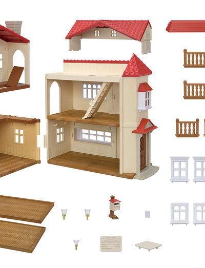 Kombiner med Den hyggelige hytte (5567) for at skabe et stort treetagers hus (sælges separat). Placer figurer og møbler (sælges separat) i huset, og du kan lege mange sjove dukkehuslege. Velegnet fra 3 år og opefter. AAA-batterier medfølger ikke i pakken.