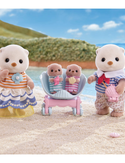 Havodder-familien er søde, runde figurer med små ører og diamantformede næser. Dette sæt inkluderer mor, far og babyer i vugge, iført outfits med muslingemotiv, en barnevogn og en skuldertaske. De to babyer i vugge kan sidde i muslingebarnevognen. Skuldertasken kan åbnes og lukkes og indeholder en perle. Babyerne i vugge holder deres yndlingsskaller. Forældrenes arme, ben og hoveder er bevægelige. Tøj kan tages af og sættes på igen. Kombinér med 5804 Havodder Søstre - Splashy Snorkel Sæt. Egnet til børn fra 3 år.