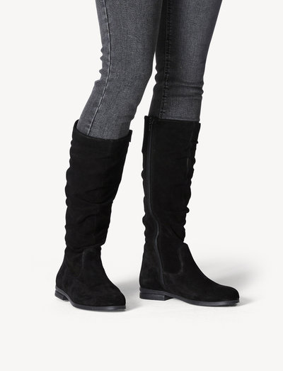 Disse stilfulde knæhøje støvler er lavet af høj kvalitet læder og har en behagelig syntetisk ydersål. Støvlerne har en lav hæl og et elegant design, der vil komplementere ethvert outfit.