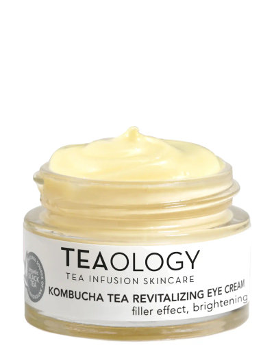 Kombucha er en fermenteret te, der er rig på probiotika og B-vitaminer, som virker på fine linjer, lysner og øjeblikkeligt oplyser øjenkonturen. Denne nærende, hurtigt absorberende creme er tilsat forurenings-testet sort te, koffein, niacinamid og et innovativt koncentrat af kombucha og epigallocatechin (EGCG), kraftige antioxidanter fra teblade. Et specielt kompleks af 6 botaniske teer stimulerer kollagenproduktionen, udglatter hævelser og forbedrer hudens elasticitet. En superaktiveret, biokompatibel pH-formel, hvor alle de aktive ingredienser arbejder i synergi for at reducere mørke rande, hævelser og tegn på træthed med en klinisk dokumenteret fyldende effekt. Den naturlige gule tekstur sikrer en korrigerende og udglattende virkning.