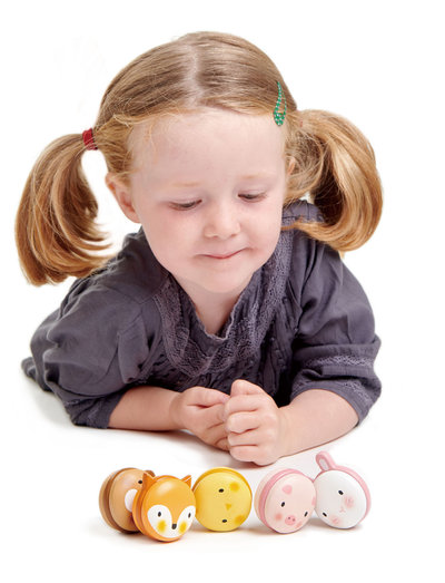 Macarons i massivt træ med søde dyreansigter. De 5 smukt farvede macarons ligner en kylling, kanin, bjørn, gris og ræv. Hver macaron har separat farvet fyld ligesom ægte macarons. Materiale: TræEmballage: 25,3 x 2,8 x 6,3 cmAlder: 2-4 år