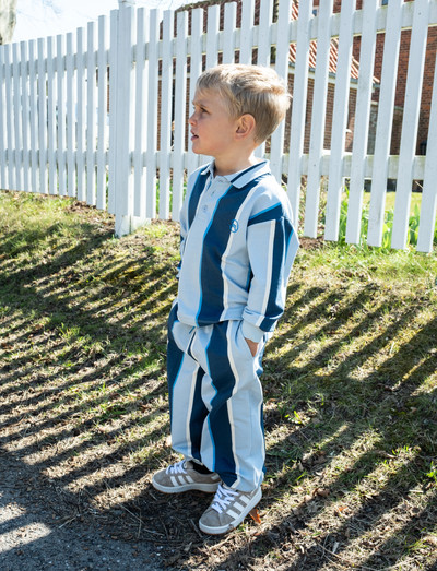 Disse sporty bukser har lodrette striber og er afsluttet med en behagelig elastisk talje og manchetter. Sæt dem sammen med en poloshirt for et koordineret look.