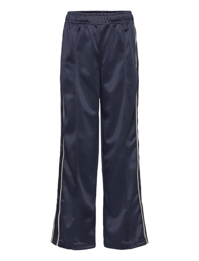 A stylish and comfortable pair of trousers from THE NEW in a beautiful deep blue color with sporty stripe details along the sides. The wide legs create a modern and relaxed look, while the lightweight material ensures a comfortable fit and elegant movement. The elastic waistband with an adjustable drawstring provides a flexible and comfortable fit, perfect for both everyday wear and sporty styling. - Wide legs for a modern and relaxed look. - Stripe details along the sides for a sporty touch. - Lightweight and comfortable material with elegant movement. - Elastic waistband with adjustable drawstring for an optimal fit.