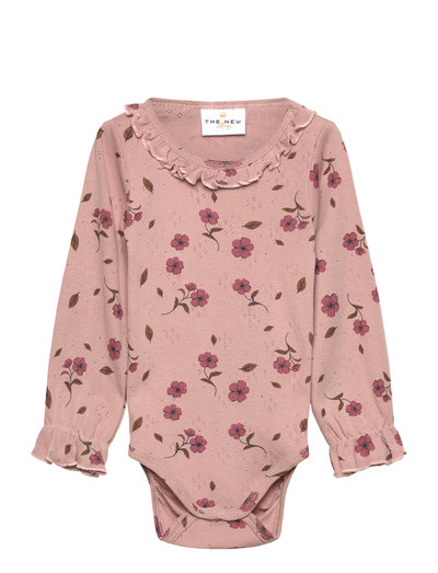 Charming long-sleeved bodysuit with a delicate pointelle pattern and flowers all over the body. This body from THE NEW siblings is a sweet addition to the wardrobe, and with the ruffle details on the body, it has a feminine expression. For a lovely set, match it with the TNSBPicole Pants.- Regular fit.- Long sleeves.- Round neckline.- Ruffles.- Snap button closure at the crotch and at one shoulder.- GOTS Organic certified by CU842535