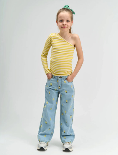 Wide fitPlayful and comfy, the TNSia Wide Fit Jeans bring a fresh twist to everyday dressing for girls. Cut in a relaxed, wide-leg silhouette, they offer plenty of room to move and play. Crafted from 100% cotton, the denim feels soft yet sturdy for long-lasting wear. A lively all-over lemon pattern adds a cheerful touch that stands out at school or weekend outings. Finished with a classic five-pocket setup, belt loops, and a secure zip-and-button front, theyre easy to style with tees, knits, and sneakers.- Wide-leg fit for unrestricted comfort and movement- 100% cotton for breathable, durable wear- Fun all-over lemon pattern that elevates any outfit- Practical five pockets, belt loops, and secure closure