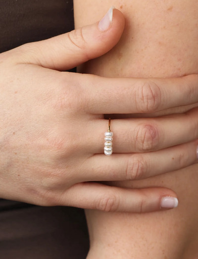 Elegante perler pryder denne fine ring, der er fremstillet i vandtæt rustfrit stål. Det er en subtil og elegant ring, der er perfekt til at tilføje et strejf af elegance til ethvert outfit. Det minimalistiske design sikrer, at den passer til både afslappede og formelle looks.