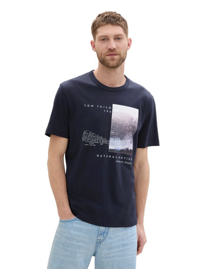 Denne t-shirt fra TOM TAILOR har et fotoprint på forsiden. Den har en klassisk rund hals og korte ærmer. Printet er et stilfuldt design, der tilføjer et strejf af personlighed til dit look.