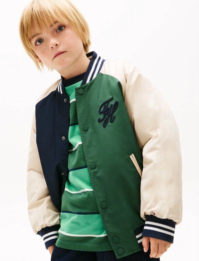 Denne jakke har et design inspireret af college-jakker og giver et stilfuldt look. Den har stribede ribkanter og en script-logo detalje, der tilføjer et klassisk præg.
