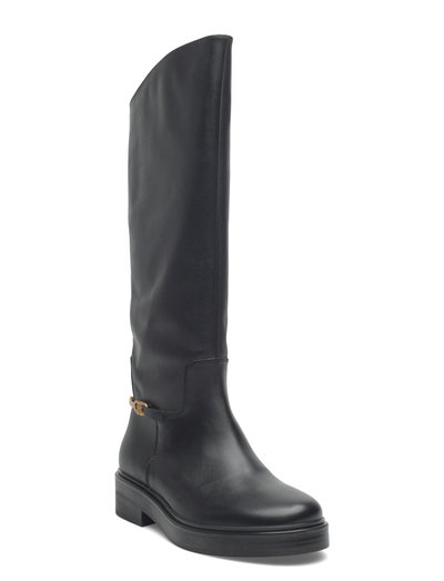 Disse høje ridestøvler er fremstillet med en elegant silhuet og har en subtil hestebidsdetalje, der tilføjer et strejf af ridemæssig elegance. De er designet til både stil og komfort og er en alsidig tilføjelse til enhver garderobe.
