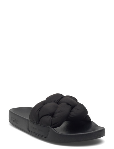 Disse slippers vil tilføje et stilfuldt touch til dine ferieoutfits med deres flettede, polstrede rem. Designet har en formstøbt fodseng og et tekstureret logo på mellemsålen.