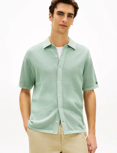 Denne kortærmede skjorte er fremstillet af merceriseret bomuld med et tekstureret vaffelstrik, og giver et løft til en klassisk silhuet. Den er designet med en afslappet pasform og en semi-spread krave, hvilket gør den ideel som et lag-på-lag-stykke til både professionelle og afslappede lejligheder. Flagplaketten på ærmet tilføjer et signaturpræg.