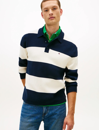 Denne langærmede polo har et markant, vandret stribedesign, der giver et klassisk look med et moderne twist. Designet fuldendes med en knaplukning og diskret branding.