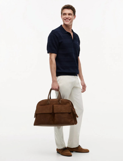Denne duffelbag er fremstillet af blødt ruskind og er en ideel rejseledsager. Den har lynlåslukning, to tophåndtag og praktiske klaplommer på ydersiden. Et metallogo tilføjer et strejf af branding.