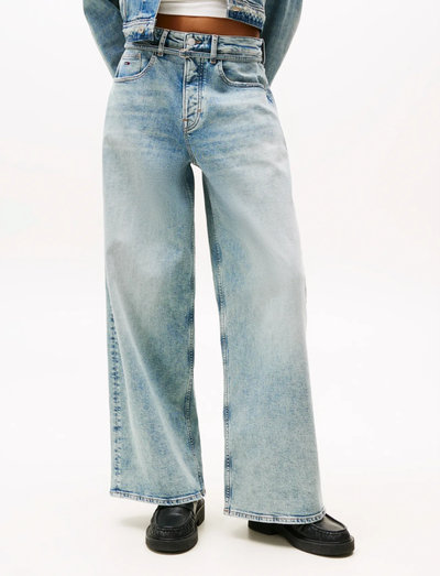 Wide fitDisse jeans har en bred benvidde, der giver en afslappet pasform og en moderne silhuet. Designet har en talje med bælte for justerbar pasform, hvilket forbedrer både komfort og stil. Et alsidigt supplement til enhver garderobe, der passer godt sammen med forskellige toppe og sko.