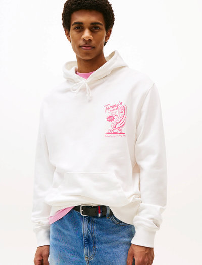 Denne Tommy Jeans hættetrøje har et nytænkende design. Den har en kængurulomme og en hætte med snøre. Hættetrøjen er lavet af behageligt materiale. Den er perfekt til afslappet brug.