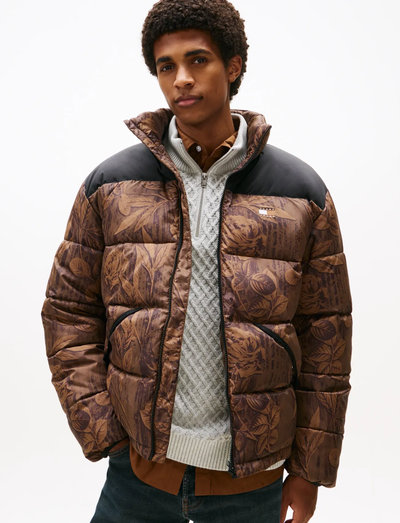 Denne vatterede jakke har et markant all-over print og giver både varme og stil. Designet har et kontrastfarvet bærestykke og diskret branding, der giver et moderne look.