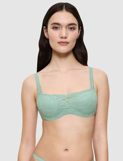 Denne vatterede bøjle-bh har fleksible bøjler og usynlige kanter, og giver både støtte og en let følelse. Den er fremstillet af bløde mikrofibre og glat blonde, der begge er delvist genanvendte. Det er et behageligt og pålideligt valg.
