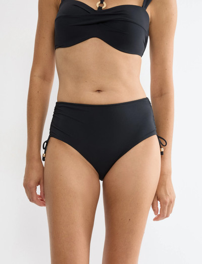 Højtdækkende trusse med justerbare sider for større personlig tilpasning. Fremstillet af delvist genanvendt polyamid, er blød at røre ved og designet til at kunne holde.