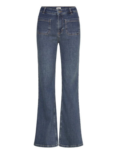 Introducing our Cleo jeans, featuring a flattering high waist and flared leg for a vintage-inspired look. With a stretchy fit, 4-pockets with patch pockets front, along with a zip fly and belt loops. A durable shape memory fabric that does not deteriorate over time or use, that requires less washing: ISKO Recall™ retains a flattering fit, hugging the body like a second skin.