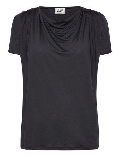 Denne top er fremstillet i et blødt jersey-stof og har en flatterende draperet halsudskæring og korte cap sleeves. Den afslappede pasform sikrer komfort hele dagen og et afslappet, elegant udseende.