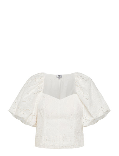 Delikat broderie anglaise løfter denne charmerende bluse, der er designet med en flatterende hjerteformet halsudskæring og korte pufærmer. En skjult lynlåslukning sikrer et strømlinet look, mens en silikonekant giver en sikker pasform omkring halsudskæringen. Fuld foring bidrager til dens raffinerede fornemmelse.