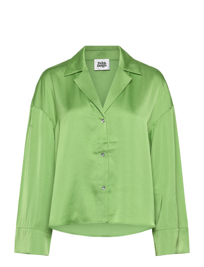 Denne skjorte er fremstillet i luksuriøs satin og har en overdimensioneret krave, der giver et dramatisk udtryk. De glitrende rhinstenknapper tilføjer en elegant og iøjnefaldende detalje, hvilket gør den til et enestående stykke.