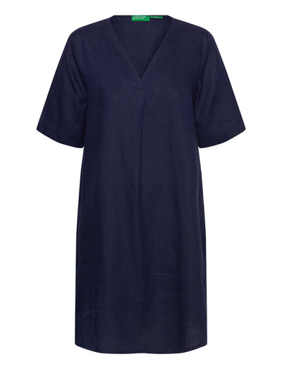Denne kjole er et stilfuldt og komfortabelt valg til enhver lejlighed. Den har en afslappet pasform og en flatterende v-udskæring. De korte ærmer og knælange kant gør den perfekt til varmere vejr.
