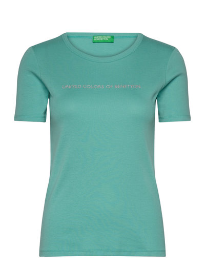 Denne klassiske T-shirt fra United Colors of Benetton er en garderobefavorit. Den har en rund halsudskæring, korte ærmer og en afslappet pasform. T-shirten er lavet af blødt bomuld og har et diskret logotryk på forsiden.