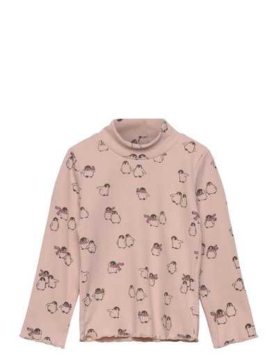 Denne langærmede top har et legende pingvinprint og er et behageligt og stilfuldt valg til hverdagsbrug. Det ribbede stof tilføjer et strejf af tekstur, mens den høje hals giver ekstra varme.