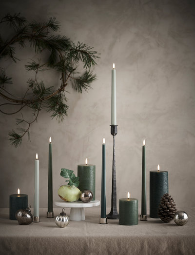LED taper candle, Olive Green, Smooth, 2-pack, 2,3x25 cm - LED lys