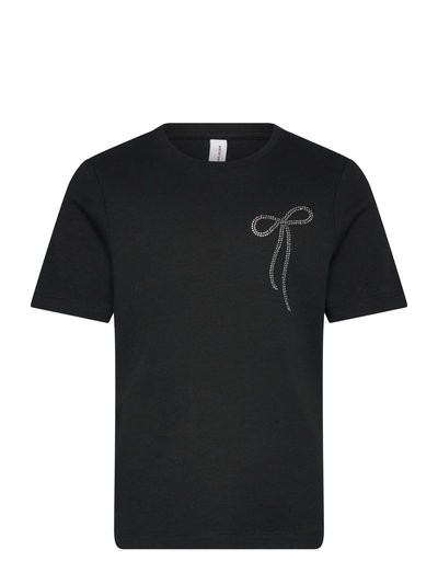 Denne T-shirt er et tidløst valg til enhver garderobe og har korte ærmer og en klassisk rund hals. Den almindelige pasform sikrer komfort, mens rhinstensdetaljerne tilføjer et strejf af glimmer. Perfekt til at skabe et cool, urbant look, når den kombineres med jeans og sneakers. Vær forsigtig, da rhinsten kan falde af under brug eller vask.