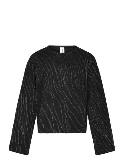 Denne langærmede top med glitter er en fantastisk tilføjelse til enhver garderobe. Den runde hals og løse pasform gør den behagelig at have på hver dag. Et alsidigt stykke tøj, der passer godt sammen med forskellige outfits.