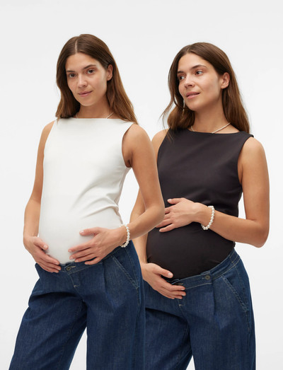 Denne 2-pak med ærmeløse toppe giver en behagelig og flatterende pasform til din voksende mave. Designet med en firkantet halsudskæring, disse regular fit toppe er en essentiel tilføjelse til din ventegarderobe.