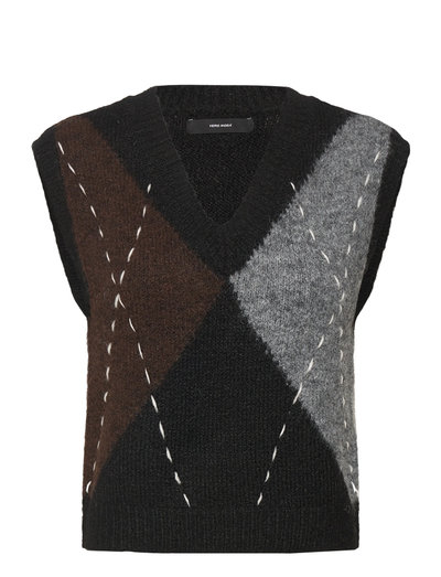 En strikket vest er et alsidigt lag-på-lag stykke, der tilføjer både varme og visuel interesse til ethvert outfit. Denne ærmeløse strik har en flatterende V-hals og ribdetaljer ved ærmerne og kanten for en raffineret finish. Den almindelige pasform gør den nem at kombinere med skjorter eller bluser for et stilfuldt og sammensat look.