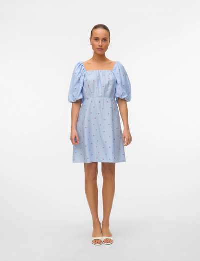 Denne Vero Moda-kjole er et stilfuldt og komfortabelt valg til enhver lejlighed. Den har en flatterende pasform og et charmerende kirsebærprint. Kjolen er perfekt til en afslappet dag ude eller en mere formel begivenhed.