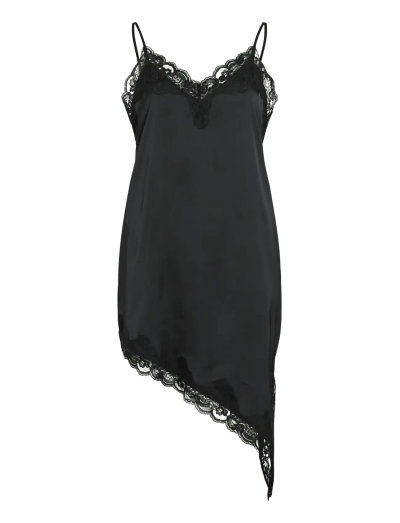 Delikat blondekant tilføjer et elegant touch til denne cami-kjole. Den asymmetriske kant skaber en moderne og flatterende silhuet, perfekt til en aften ude eller en særlig lejlighed.
