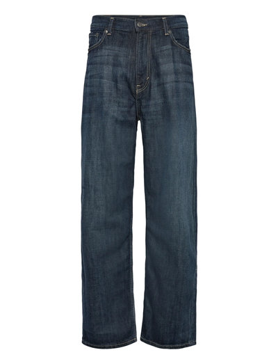 A pair of loose fit jeans with a straight leg and long length. These jeans are crafted from organic cotton rigid denim enhanced with recycled cotton. They feature a classic 5-pocket design, and a zip fly.
