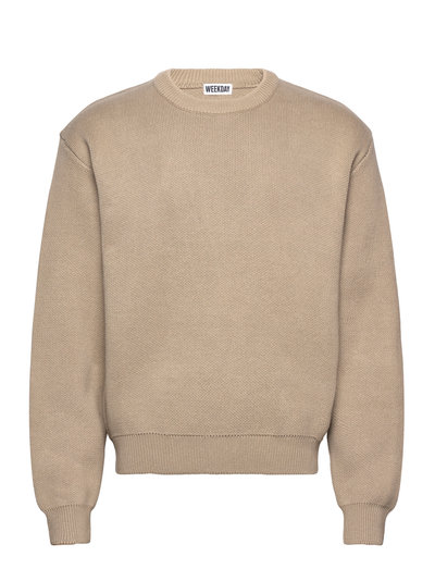A heavy knitted regular-fit sweater crafted from soft cotton yarn. This cozy sweater features a round ribbed neckline and ribbed hems.