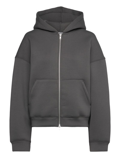 En overdimensioneret scuba-hættetrøje med lynlås, struktureret pasform og glat tekstur, fremstillet af genbrugspolyester tilsat viskose og genbrugselastan for ekstra stræk og komfort. Denne favorit har en hætte med dobbelt lag, en alsidig tovejslynlås foran, forlommer og foldede manchetter og forneden.
