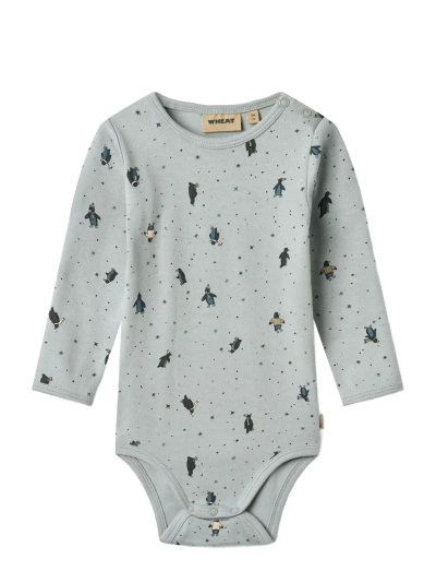 Cute long-sleeved rib body with print in soft organic cotton for babies.- Press buttons at the shoulder and crotch- Ribbed structure- Wheat signature printWheat's body is unisex and a true essential in your babys wardrobe, as it can be worn on its own or as an extra layer underneath everyday clothing. The bodies either have press buttons at the shoulder or buttons at the neck for better comfort, when you are dressing your baby. The body also has press buttons at the bottom, which makes it easier for you to access your babys diaper.---- Standard 100 by OEKO-TEX®- 95% Organic cotton, 5% Elastane- The product is GOTS certified