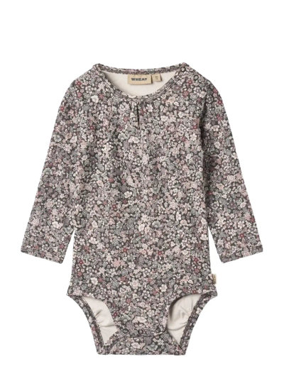 Cute long-sleeved body with print in soft organic cotton for your baby. - Regular fit- Gathering at the front- Press buttons at the shoulder and crotch- Hand drawn all-over printWheats body is unisex and a true essential in your babys wardrobe, as it can be worn on its own or as an extra layer underneath everyday clothing. The bodies either have press buttons at the shoulder or buttons at the neck for better comfort, when you are dressing your baby. The body also has press buttons at the bottom, which makes it easier for you to access your babys diaper. They are available in beautiful colours and hand drawn prints, which are made by Wheats in-house design team. ---- Standard 100 by OEKO-TEX®- 95% Organic cotton, 5% Elastane- The product is GOTS certified